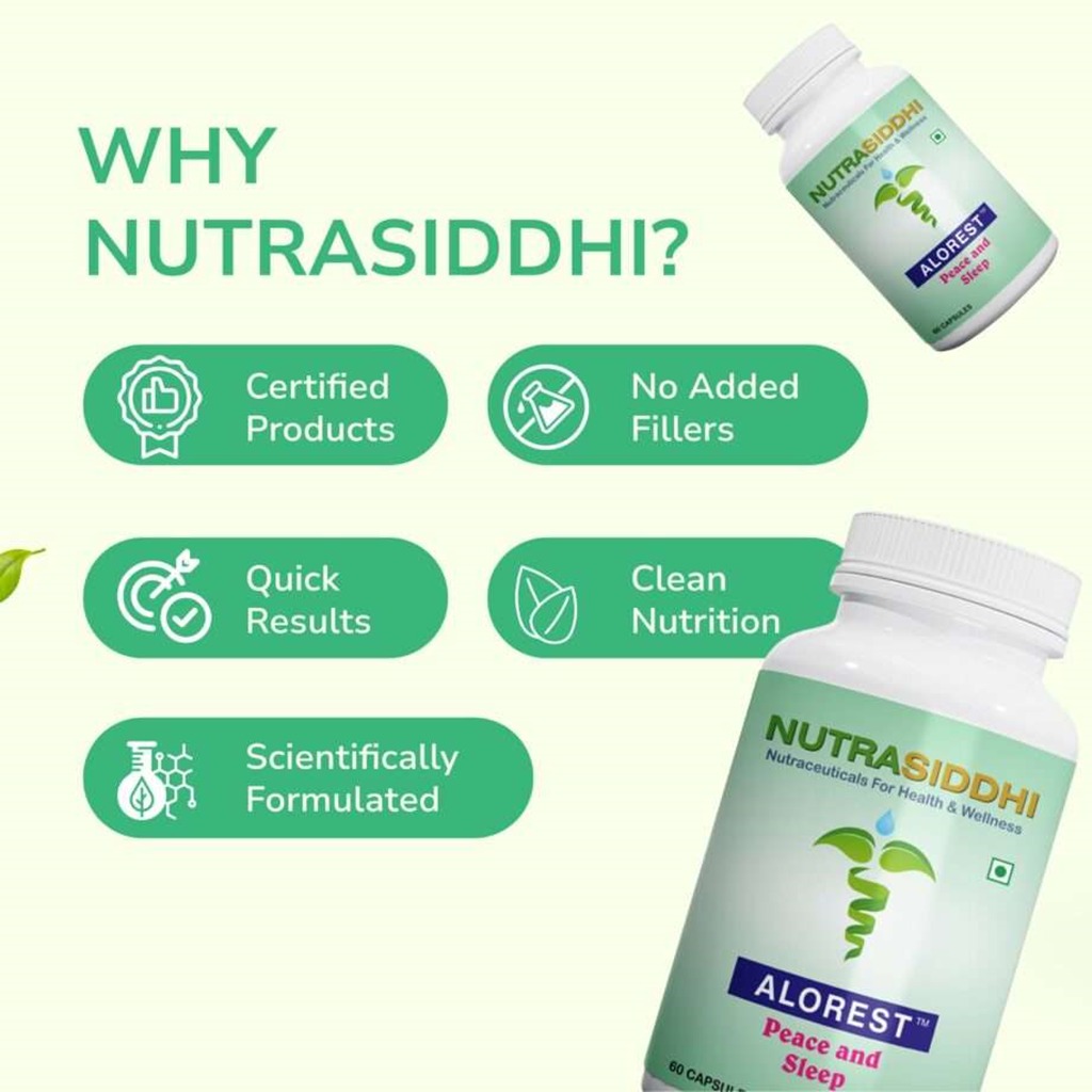 Introducing NutraSiddhi’s Peace and Sleep, a specially formulated supplement designed to promote relaxation, reduce anxiety and stress, alleviate pain and inflammation, and support vital organ function. This unique blend combines a variety of ingredients, including vitamins, natural extracts, and essential compounds, to help you achieve a peaceful and restful sleep.